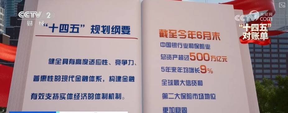 “十四五”规划纲要提出,健全具有高度适应性、竞争力、普惠性的现代金融体系,构建金融有效支持实体经济的体制机制。截至2025年6月末,中国银行业和保险业总资产超过500万亿元,5年来年均增长9%,全球最大信贷和第二大保险市场地位更加稳固。